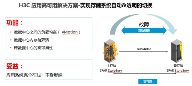 對于這一點,新華三推出了應(yīng)用高可用解決方案。這一方案的重點就是實現(xiàn)存儲系統(tǒng)自動、透明的切換。通過數(shù)據(jù)中心之間的負載均衡、數(shù)據(jù)中心內(nèi)存儲雙活、跨數(shù)據(jù)中心的高可用性等功能,讓金融應(yīng)用系統(tǒng)可以忽略外部故障影響,完全在線。